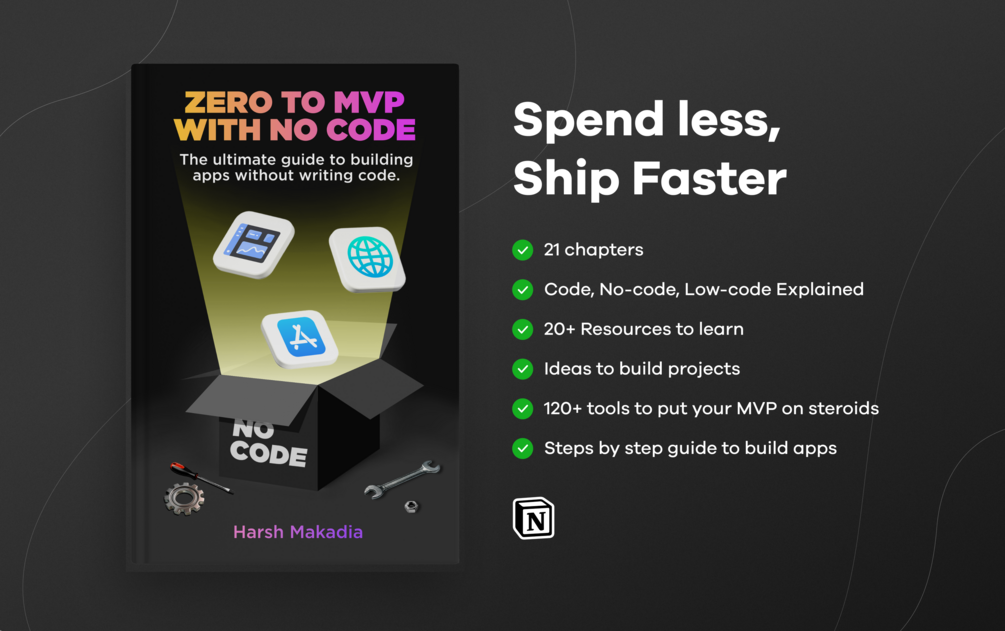 21 chapters take you through the app-building process, with bonus curation of 100+ No-Code tools having over 2,000+ downloads.